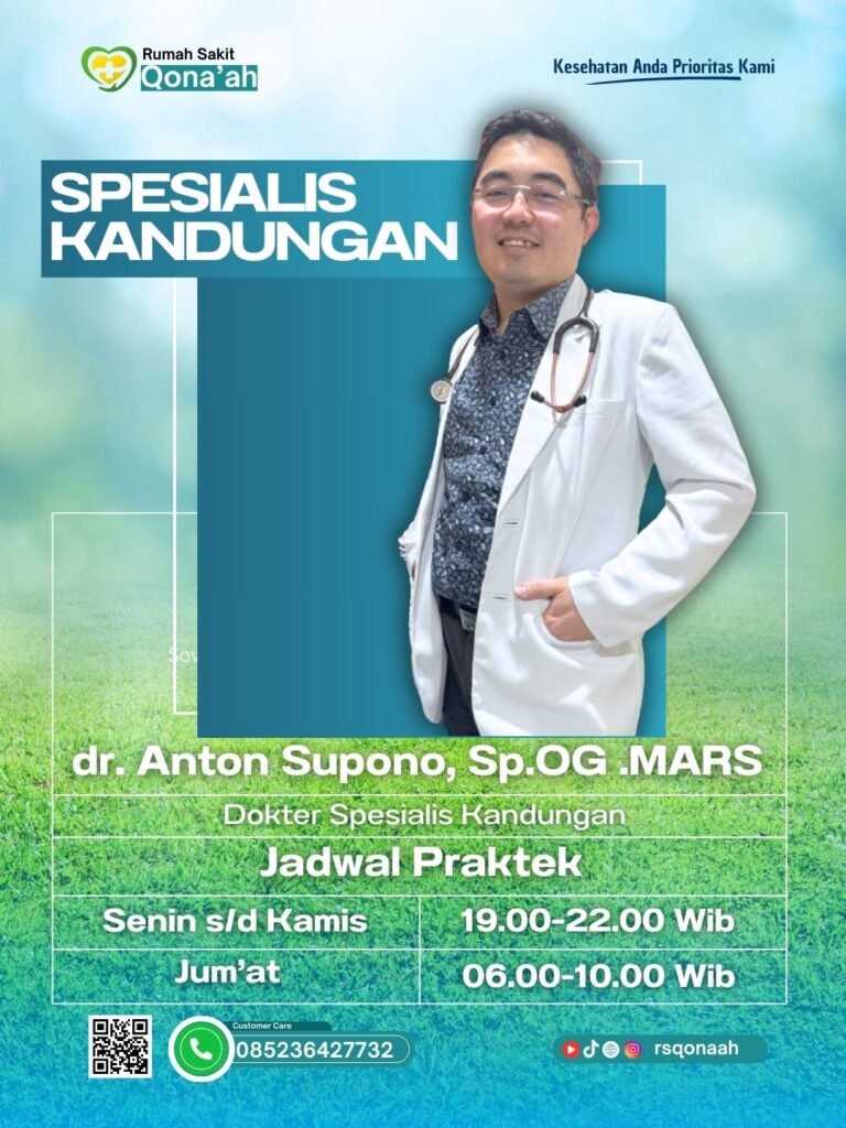 Butuh pendampingan medis yang profesional dan penuh perhatian? dr. Anton Supono, Sp.OG, MARS hadir untuk memberikan layanan terbaik dalam:rsqonaah.com+9Medicastore+9Reddit+9